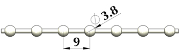 Ball dia. 3,8mm / pitch 9mm
