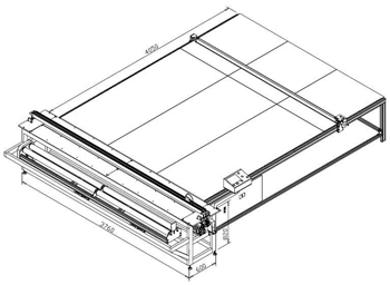- Verstellbarer Saum Taschenformat. Pneumatisch gesteuerte Faltstange, um den Stoff genau zu falten. Die Falttiefe (20 ~ 50mm) ist durch eine Spindel und Gegenuhr einstellbar.